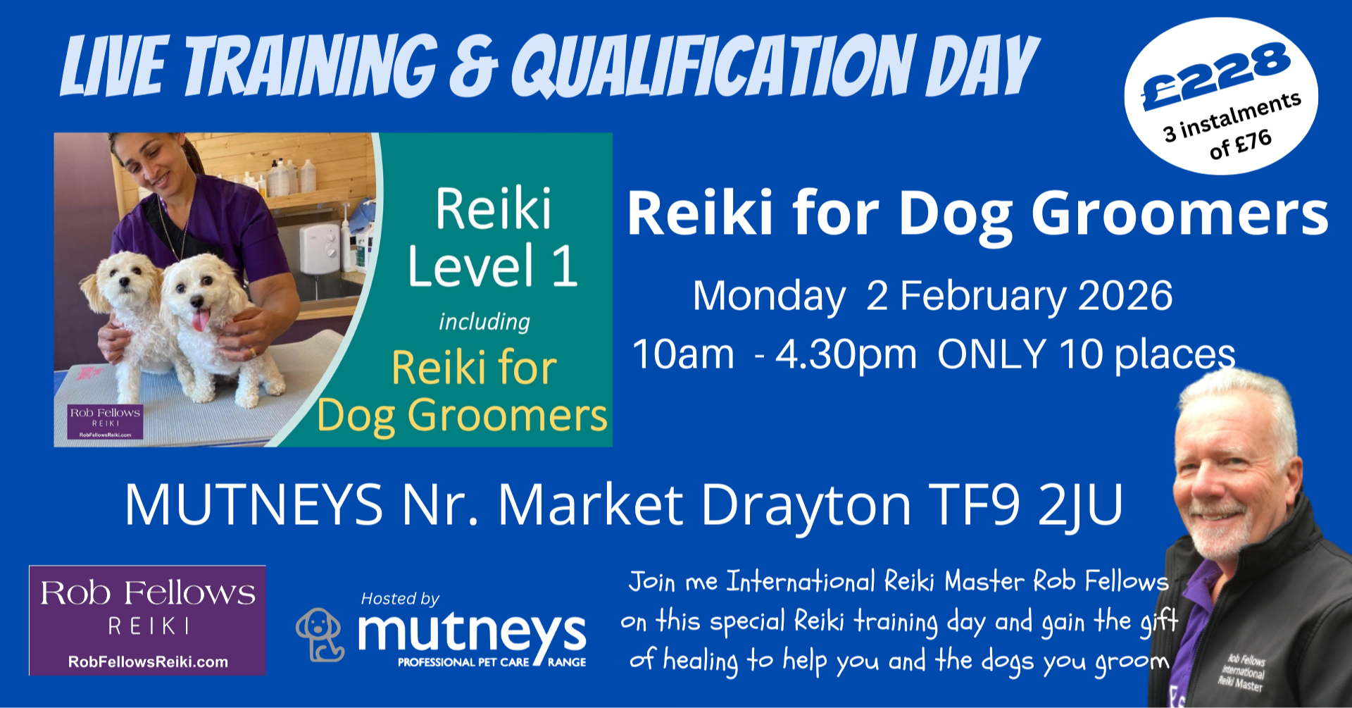 One FINAL Live Reiki Level 1 Training and qualification Day (especially for Dog Groomers, but others are welcome)